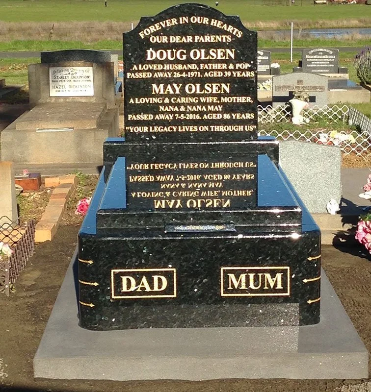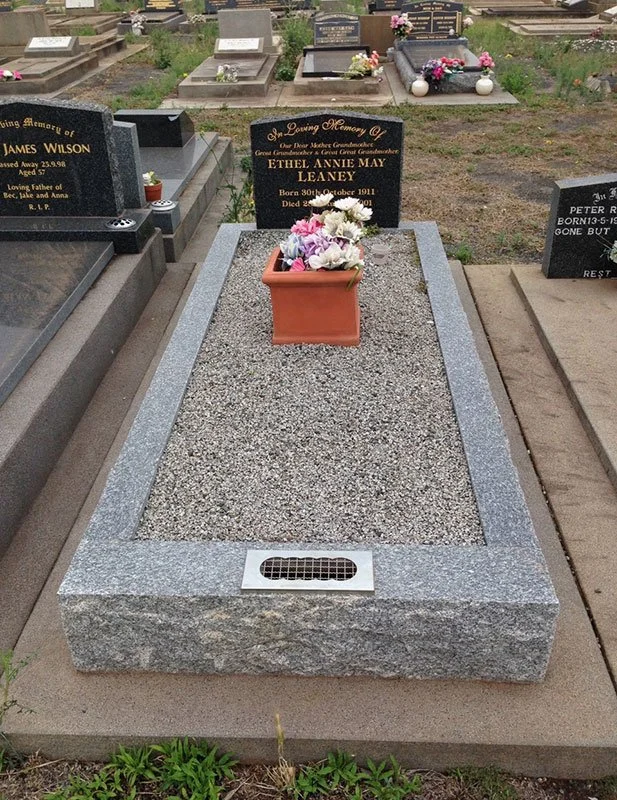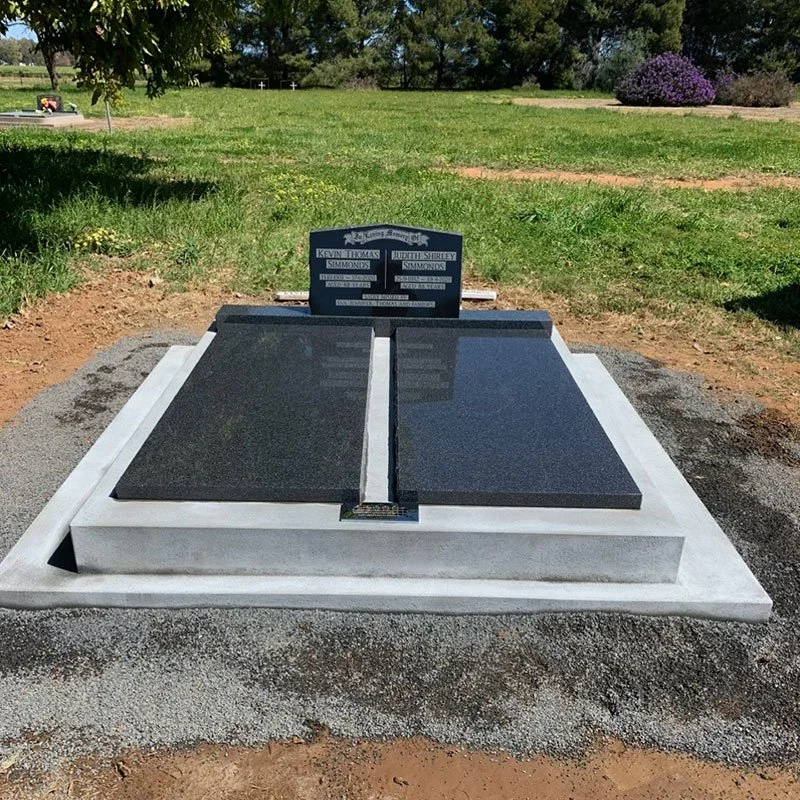 Lawn style memorial come in a range of finishes: Grandee all Polished, Grandee Rock Edge, Double Grandee Rock Edge, all Polished Adelaide Black or Balmoral.