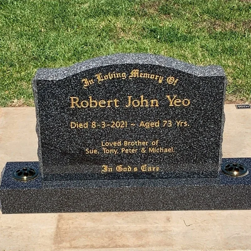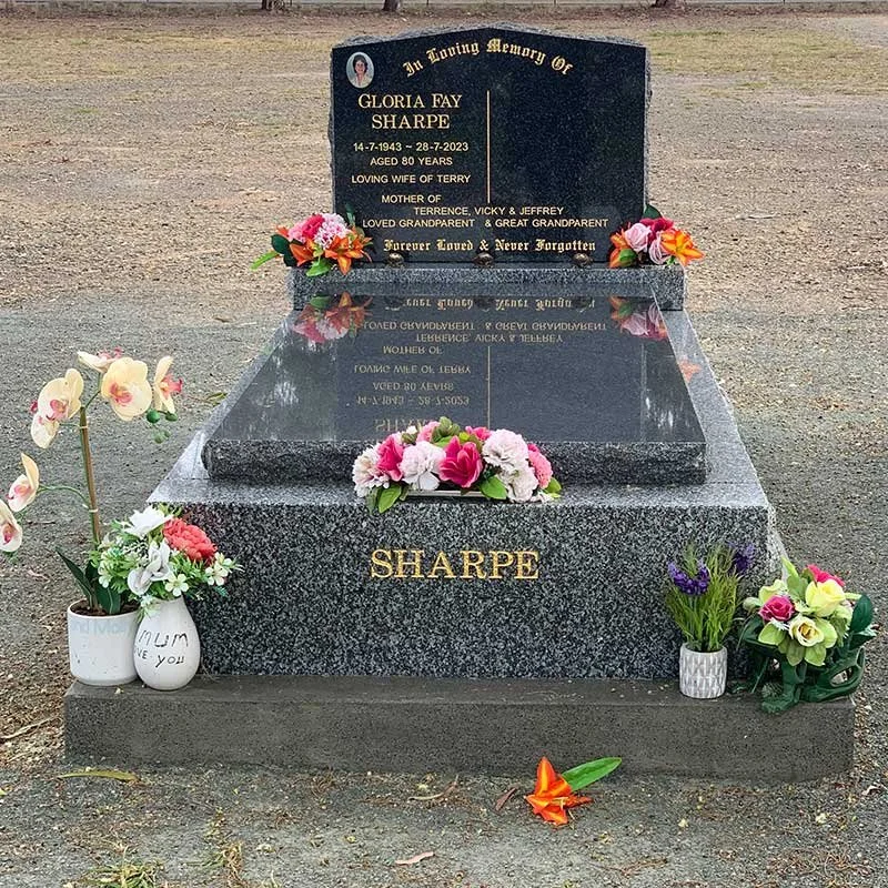 Single style memorial come in a range of finishes: Grandee All Polished, Grandee Rock Edge, Double Grandee Rock Edge, All Polished Adelaide Black or Balmoral, and Granolite memorials
